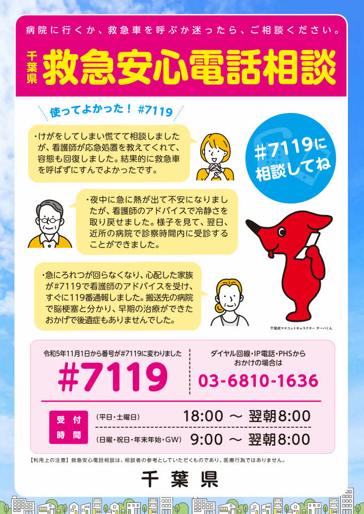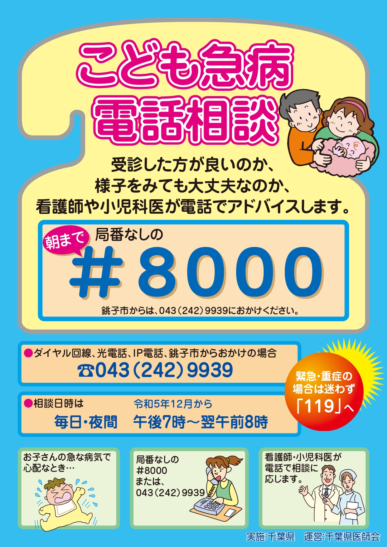 プッシュ回線:#8000 ダイヤル回線・携帯電話:043(242)9939