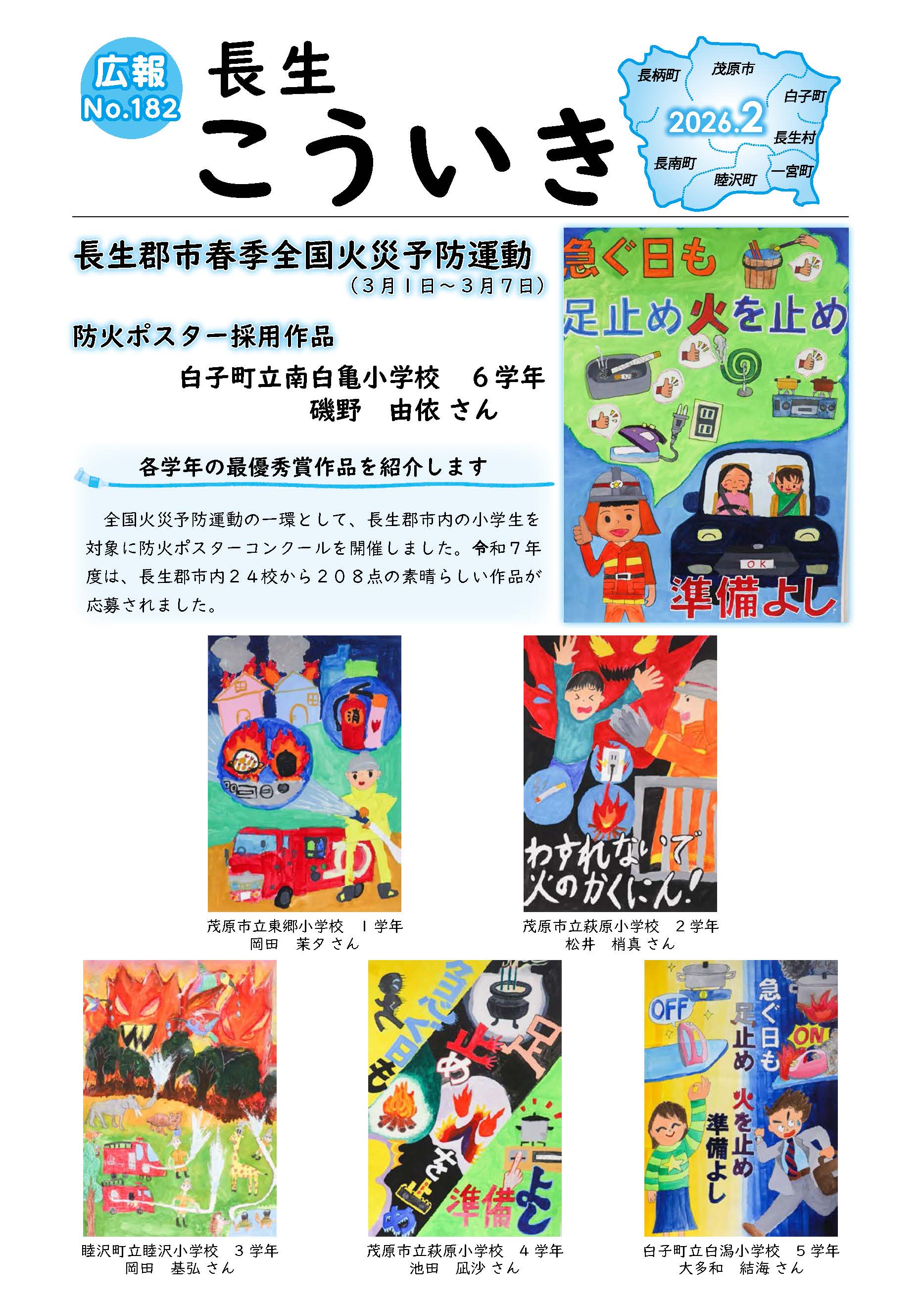広報「長生こういき」 長生郡市広域市町村圏組合の広報紙「長生こういき」は、年4回、4月・7月・10月・2月の1日発行です。【配布方法】1 新聞折込み(発行月1日の朝刊)折込みする新聞は、朝日新聞・読売新聞・産経新聞・毎日新聞・千葉日報・東京新聞・日本経済新聞です。※令和4年7月発行分から新聞折込みを2日から1日に変更しました。2 公共施設や店舗への設置配布長生郡市内のスーパーや郵便局、公共施設などに広報紙を設置しています。気軽に広報紙を手に取り、読んでいただけるようになりましたので、ぜひご利用ください。※広報紙の部数に限りがあるため、長生郡市内すべてのスーパーなどに広報紙を設置しているわけではありません。また、納品の関係により店舗等への広報紙の設置については、発行日に置かれていない場合がありますので、ご了承ください。 広報「長生こういき」配布場所一覧(pdf:239KB) 【令和7年8月現在】 ※個別郵送の対応は行っていません。※長生郡市内で、設置配布があると便利な店舗や金融機関などのご要望がありましたら、設置配布の依頼を行いますので、事務局総務課 企画財政係(☎0475-23-0107)までご連絡ください。 公立長生病院広報「なのはなNEWS」 公立長生病院広報紙「なのはなNEWS」は、こちらからご覧ください。 広報「長生こういき」発行時にお知らせ(メールマガジン)が届きます メールマガジン購読・解除 広報「長生こういき」発行のお知らせ(無料) 購読 解除 読者購読規約 powered by まぐまぐ! 広報「長生こういき」の最新号が発行されたことをお知らせするメールが届きます。 民間のメールマガジンサービスです。読者購読規約をお読みの上ご利用ください。 購読の登録方法は以下のとおりです。 1.「購読」の左側にチェックが入っているか確認 2.入力欄に受信したいアカウントのメールアドレスを入力 3.「送信」をクリック 購読を止めたい場合は、解除の左側にチェックを入れて同様の操作をしてください。注:無料のメール発行サービスを利用しているため、メールマガジン内に広告が掲載されていますが、ご了承ください。 広報「長生こういき」を『ちいき本棚』に掲載しました ちいき本棚とは このシステム・アプリは、東京インタープレイ株式会社が作成したものです。 システムやアプリの利用方法などについては、東京インタープレイ株式会社へお問い合わせください。 ちいき本棚ホームページ https://sidebooks.jp/chiiki/index.html バナーをクリックすると「長生こういき」の一覧が開きます。 QRコードはこちら 【お詫びと訂正】広報「長生こういき」令和7年2月号の掲載記事に誤りがありました 令和7年度(2025年度) ◇No.182 令和8年2月号 (pdf:3.4MB) ◇No.181 令和7年10月号 (pdf:2.8MB) ◇No.180 令和7年7月号 (pdf:2.3MB) ◇NO.179 令和7年4月号 (pdf:3.3MB) 令和6年度(2024年度) ◇No.178 令和7年2月号 (pdf:5.5MB) ◇No.177 令和6年10月号 (pdf:2.8MB) ◇No176.令和6年7月号 (pdf:2.7MB) ◇No.175 令和6年4月号 (pdf:3.6MB) 令和5年度以前の過去号は下のページ内ウィンドウをスクロールしてください。 インラインフレームを使用した部分です。 令和5年度以前の各号は、こちらからご覧いただけます。 お問合せ 事務局総務課 企画財政係TEL 0475-23-0107詳しくはこちらをご覧ください。